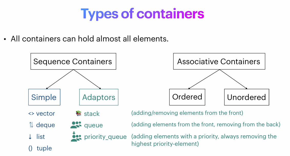 All containers can hold almost all elements.