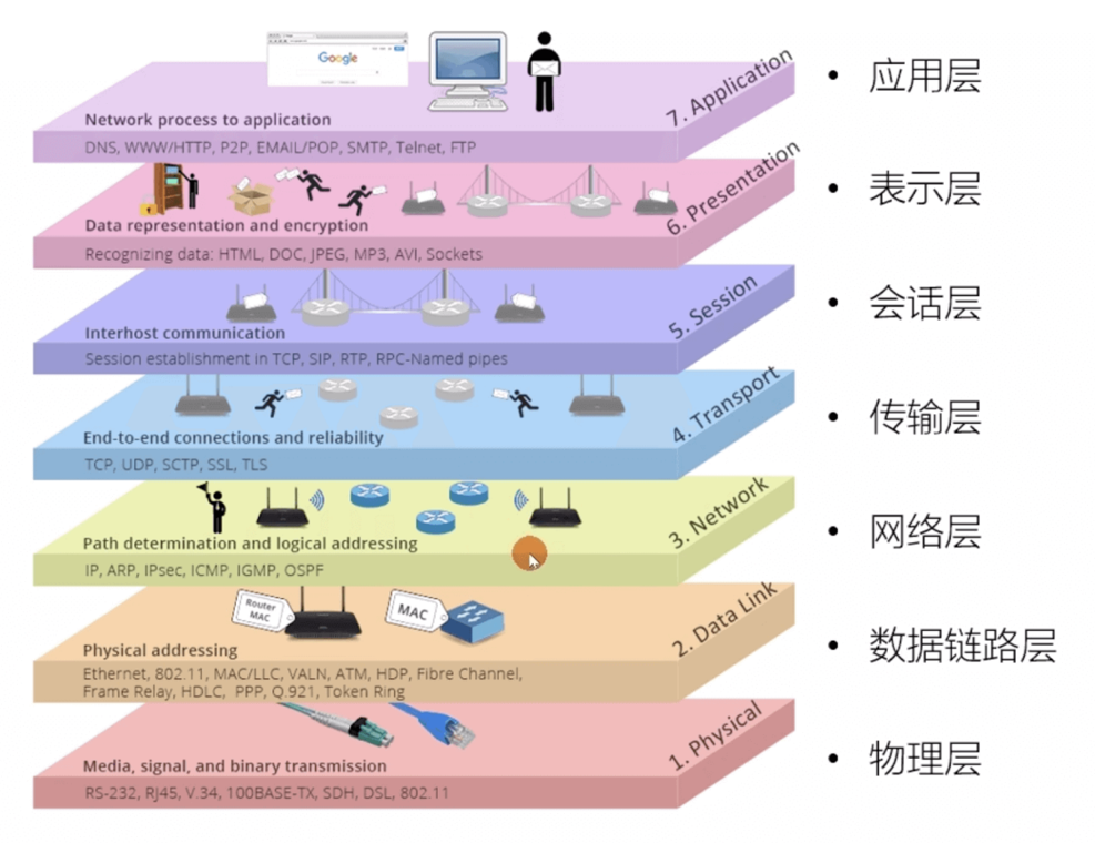 传输的不同层级上具备不同协议