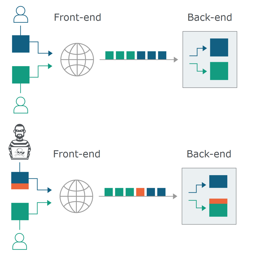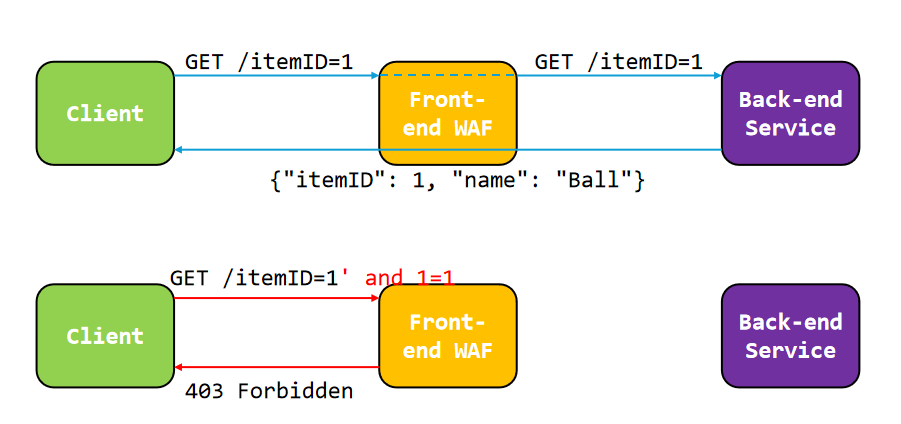 (Assume the Front-end server will reject all requests to /admin(WAF) but the Back-end don't.)