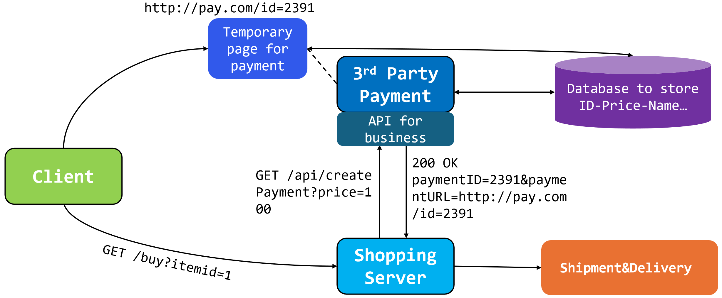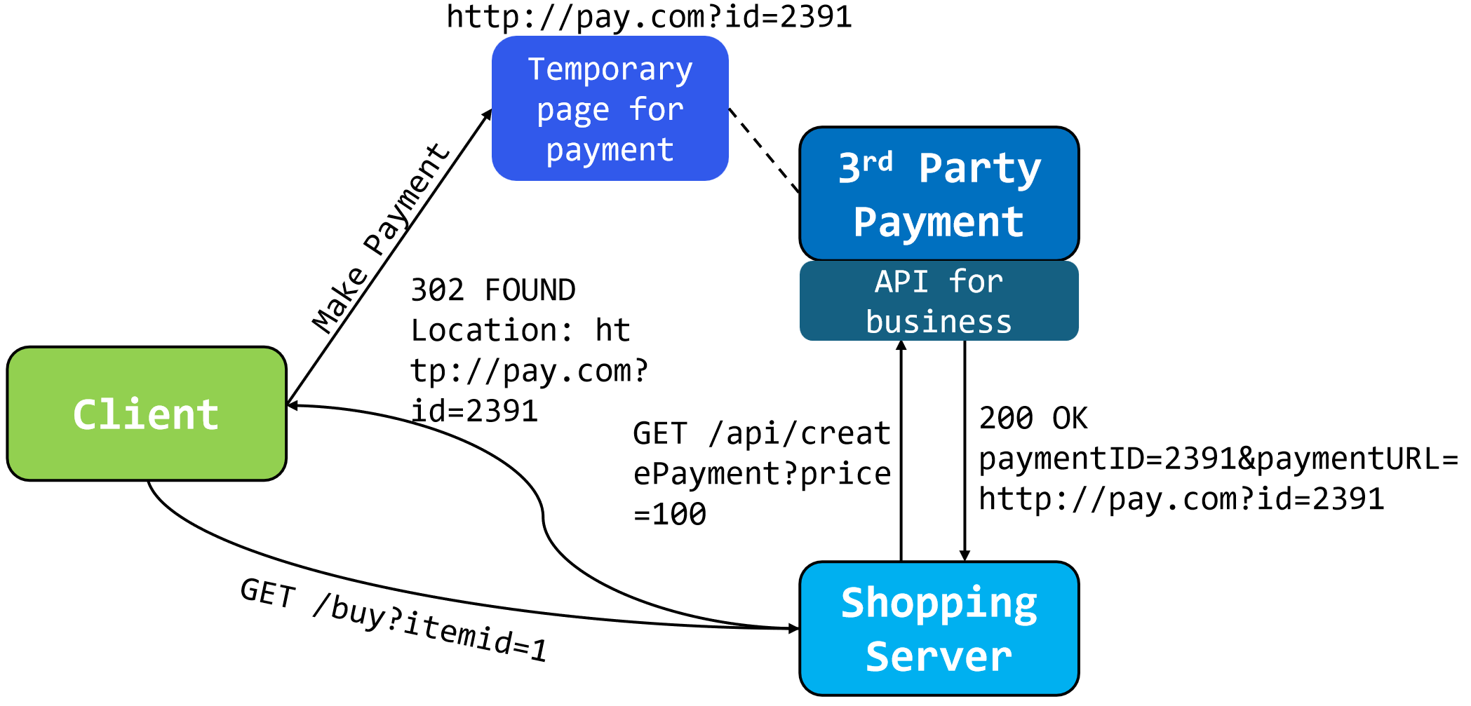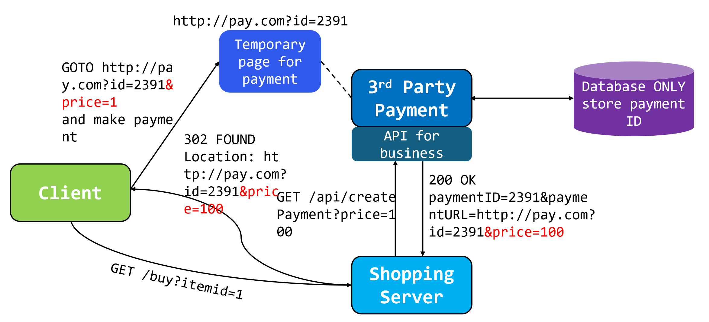 由于第三方平台只存储了id,未存储price,因此client拦下来传递到temporary page的URL,如