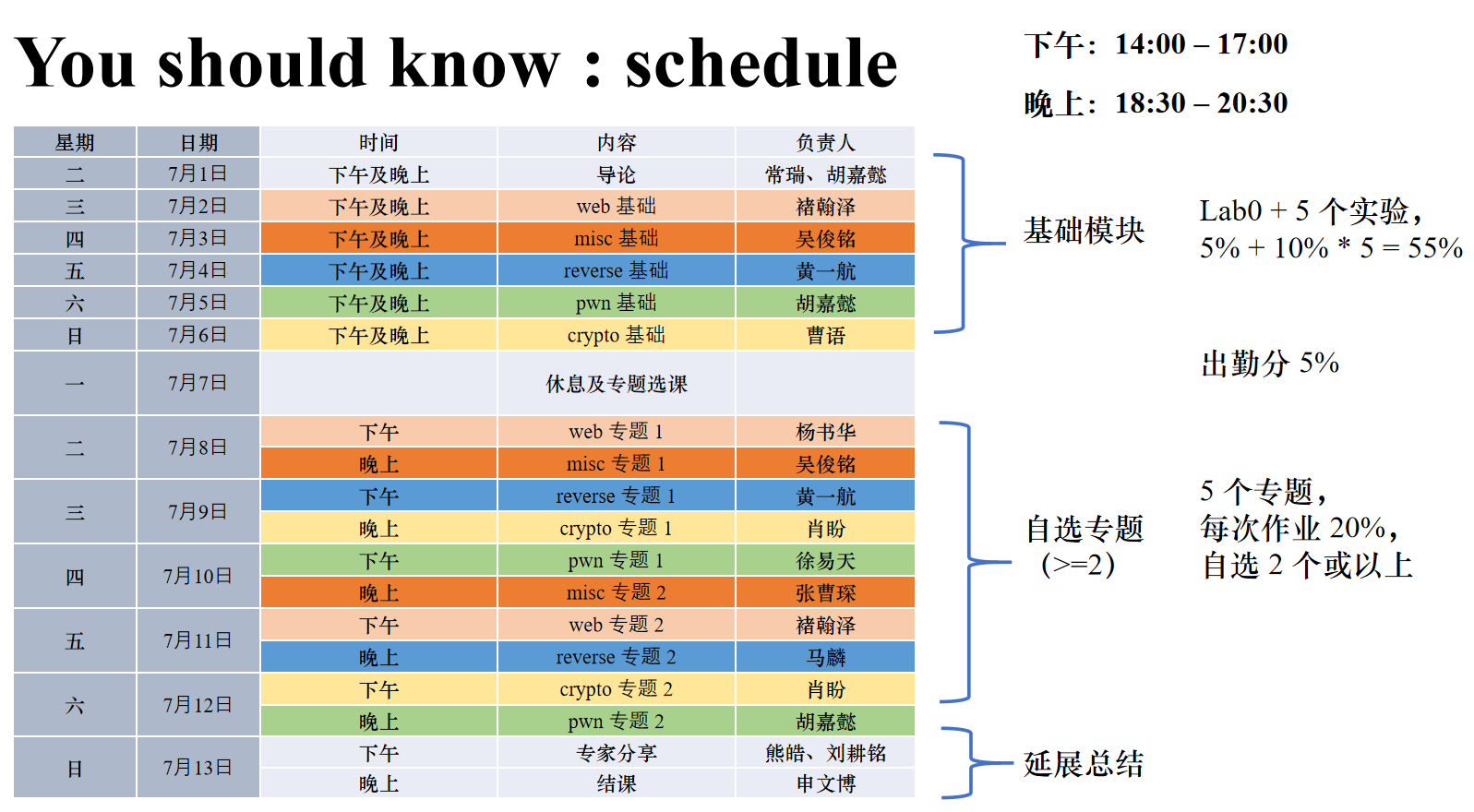以下是课程Schedule: