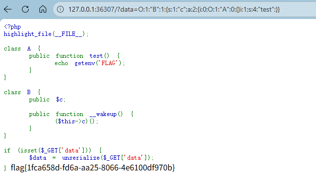 最后在尾部加上?data=O:1:"B":1:{s:1:"c";a:2:{i:0;O:1:"A":0:{}i:1;s:4:"test";}}即可.