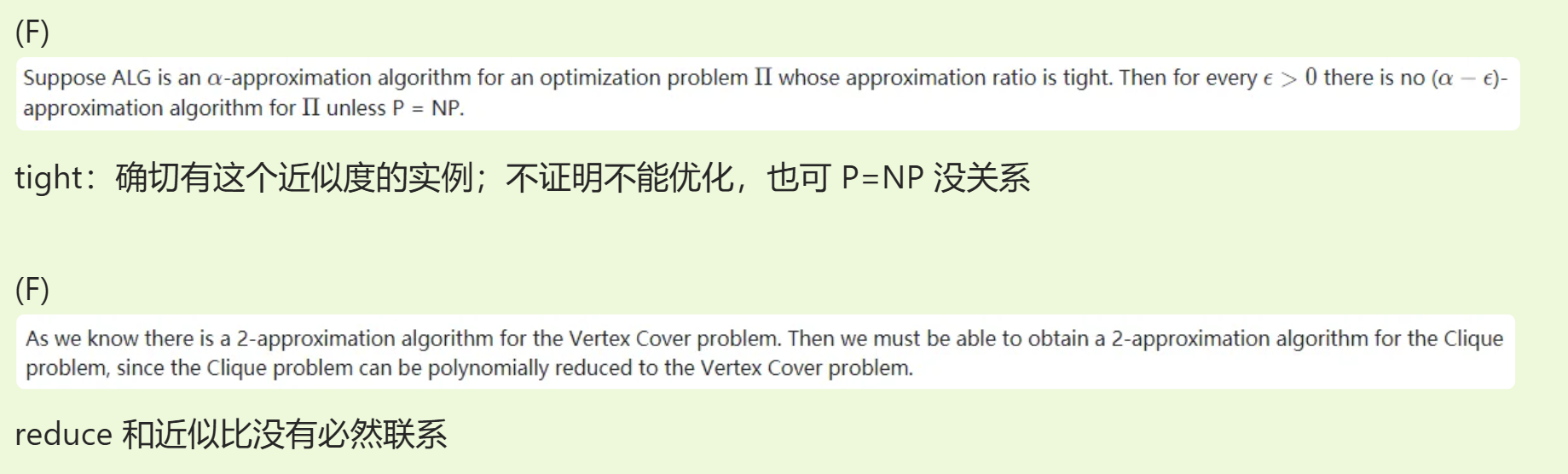 PTAS(polynomial-time approximation scheme,多项式时间近似方案): an approximation scheme which for any fixed \(\epsilon > 0\), the scheme runs in time polynomial in the size \(n\) of its input instance.