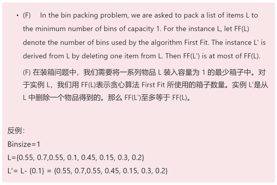 是不稳定的算法,如果在一个序列中所需的箱子数量是\(M\),去掉一个箱子之后,所需的箱子数也可能\(>M\).