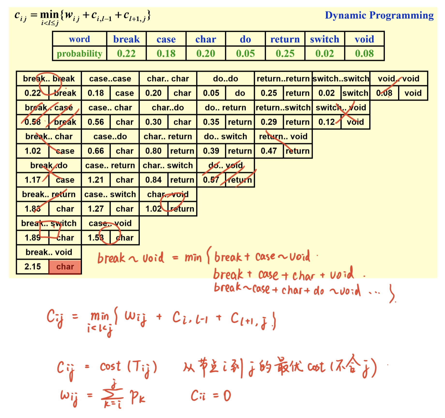 将\(N\)个word(\(w_i\)对应的被搜索到的概率是\(p_i\),单词序上 \(w_1< w_2 < \cdots <w_N\) ) 放入一个BST中,找到最佳的顺序使得所有word被搜索到的期望时间之和最小.