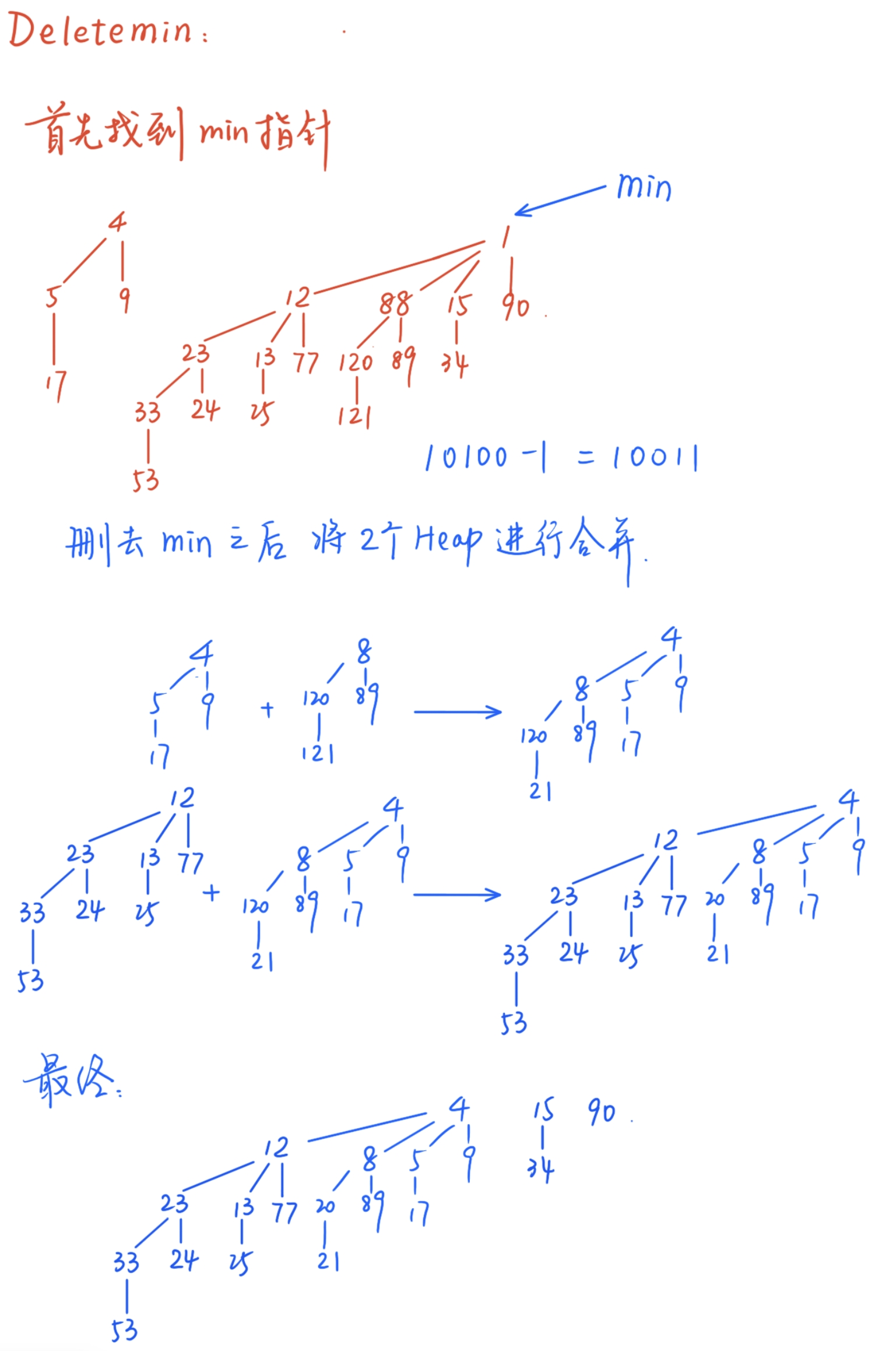 类似之前的heap,插入操作看作是与一个结点的二项堆的merge.