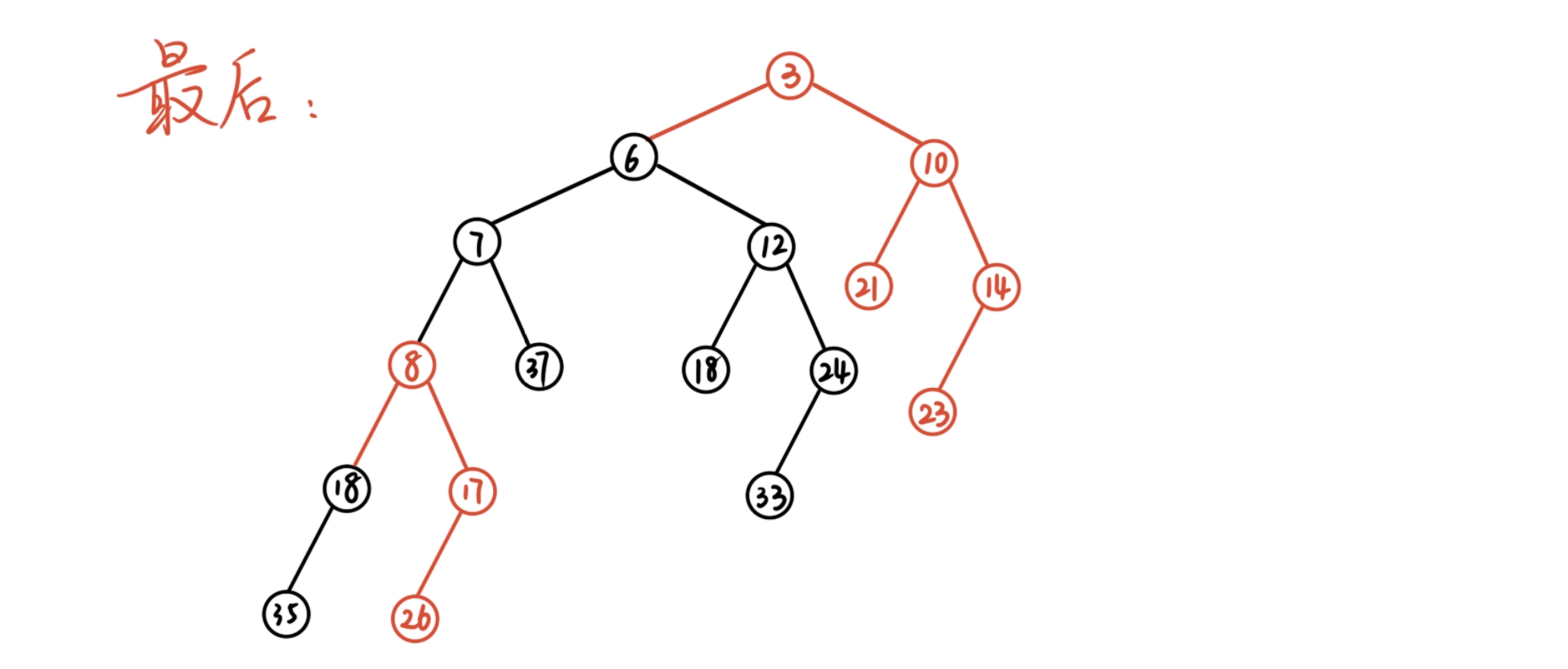 如果左右都不为空,则该节点的\(\text{dist} = \min{(\text{dist}_{\text{leftchild}},\text{dist}_{\text{rightchild}})} + 1\).