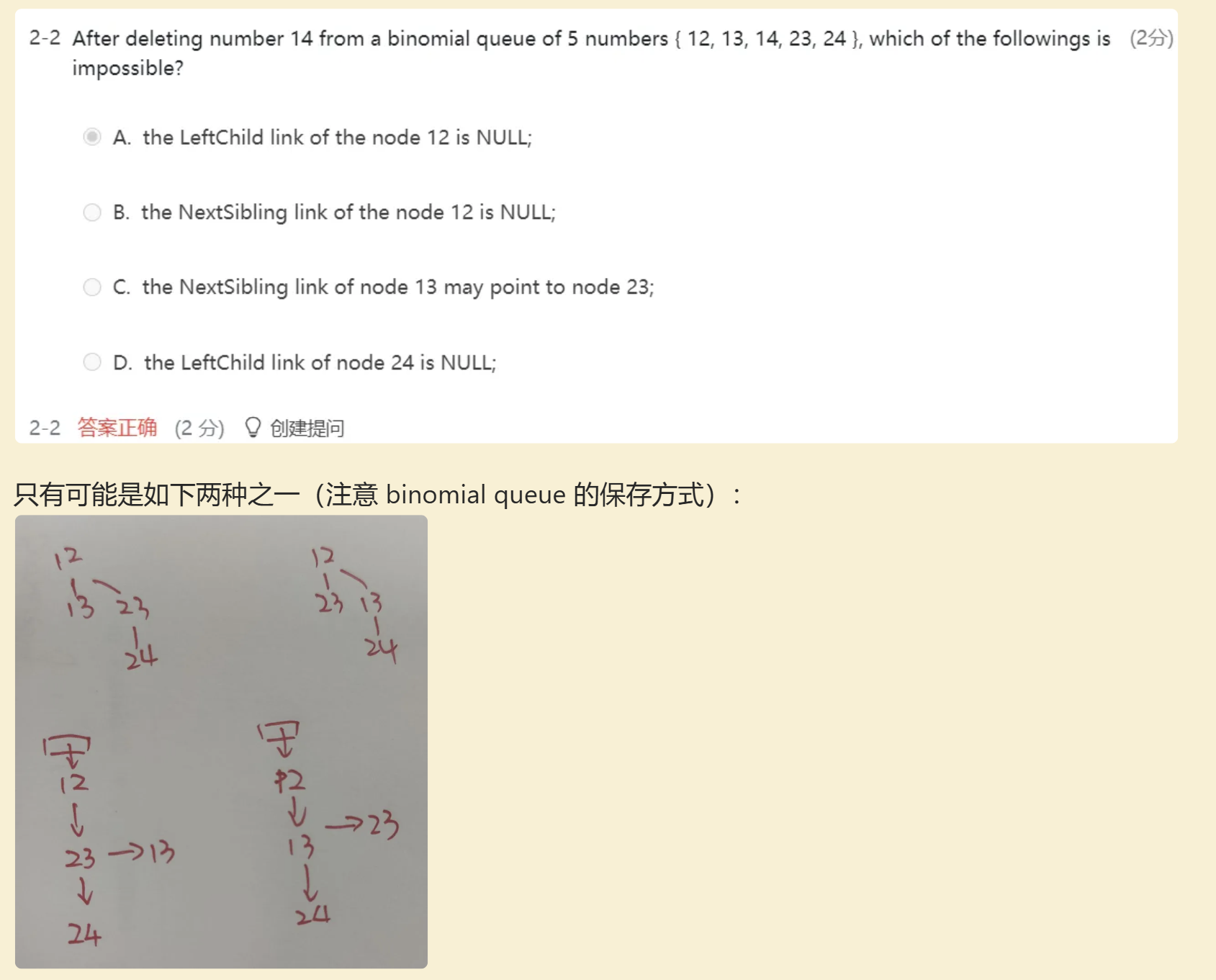 D.Consider the case that we perform consecutive insertions into a Binomial queue. Assume that we have performed “cascading merge” after inserting a key. Then in the next 3 insertions, we do not have to perform “cascading merge”.