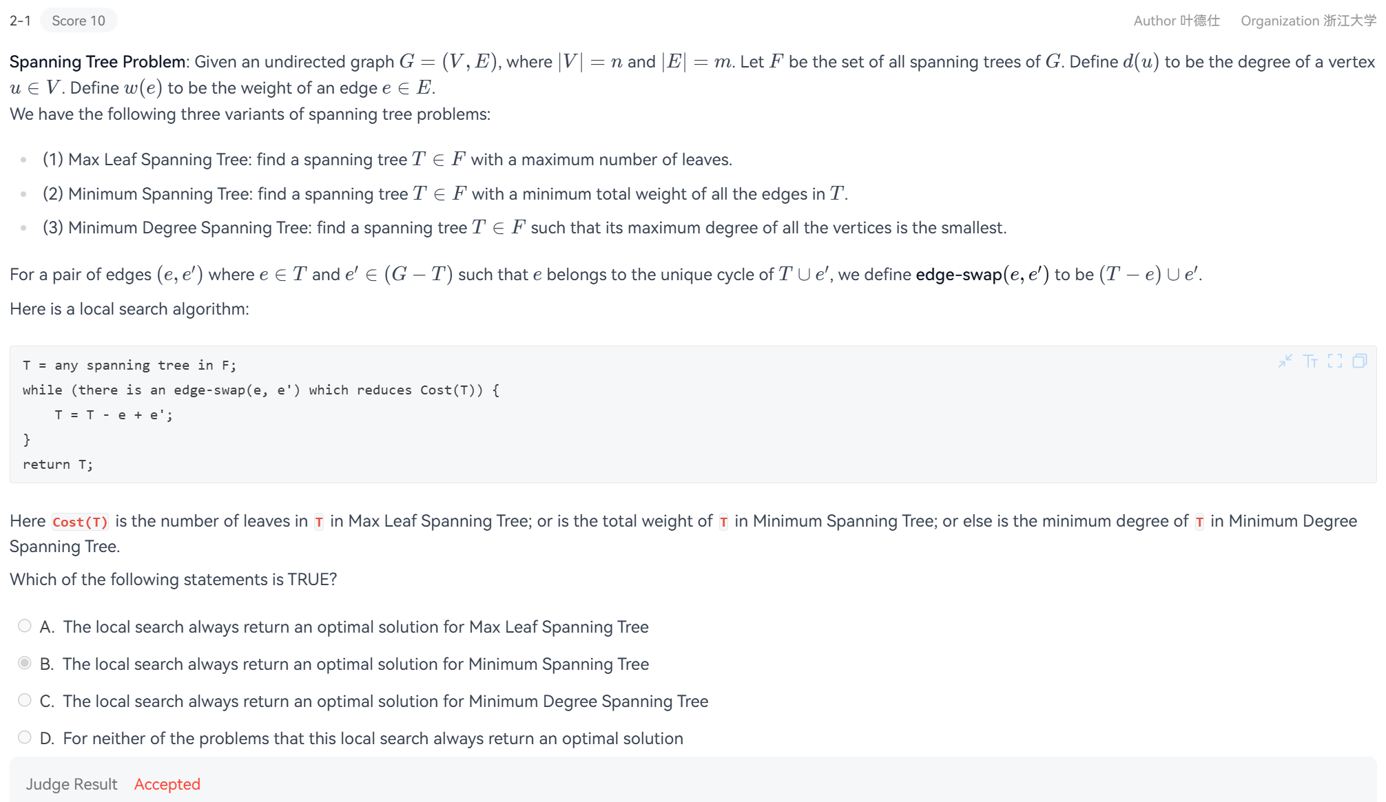 助教说一般蒙的话可以选Minimum Spanning Tree,因为是其中简单的一种树.