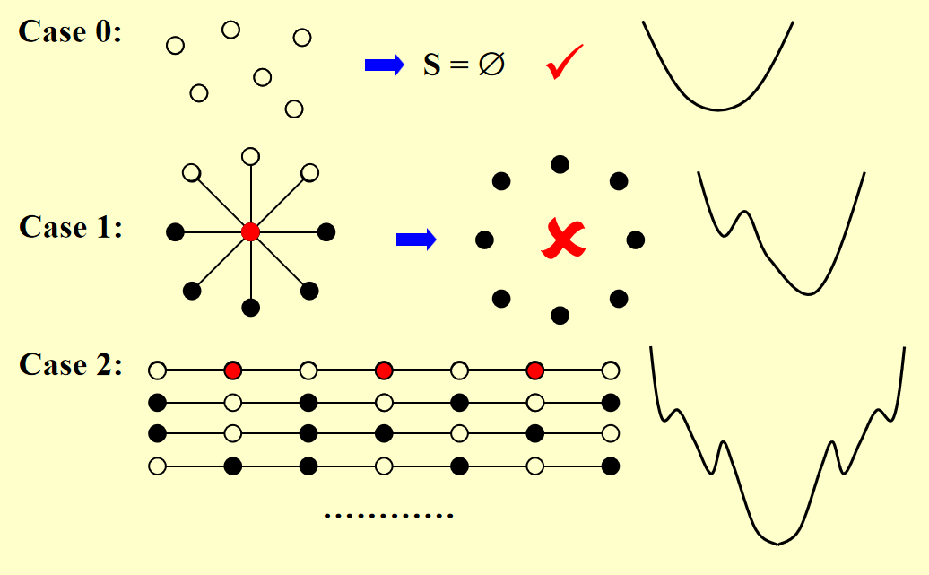 对于case 1,有一定概率可以跳出local optimum得到正确解. 只要 当温度 \(T\) 设置合理时,算法会以一定概率接受这些坏解,从而跳出当前局部最优的“陷阱”,探索更广阔的解空间,甚至找到全局最优.