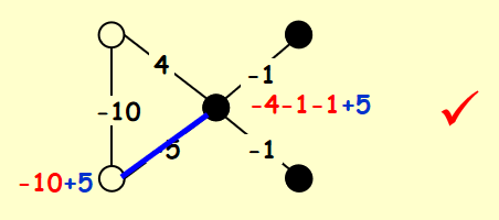 \[\sum\limits_{\{\forall v \mid e = (u,v) \in E\}} w_eS_uS_v \leq 0\] -