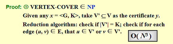 首先,Vertex Cover Problem 属于 \(\textbf{NP}\)(验证算法的时间复杂度为 \(O(N^3)\)).