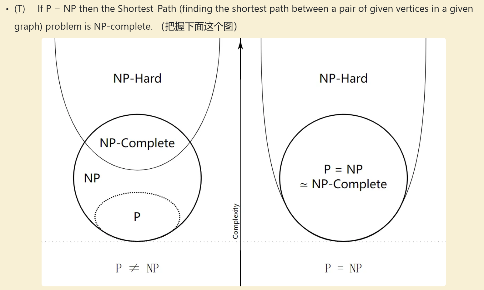 如果能够在多项式时间内解决所有的\(\textbf{NP-complete}\)问题,则我们能够在多项式时间内解决所有的\(\textbf{NP}\)问题,那么就有\(\textbf{P} = \textbf{NP}\).