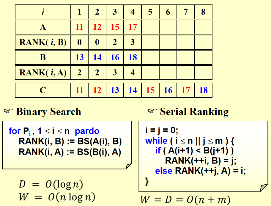 考虑把merge转换成ranking问题. 首先定义\(RANK(j,A)\),其实际意义是\(B(j)\)如果直接插入到\(A[]\)中,它应该放在的位置: