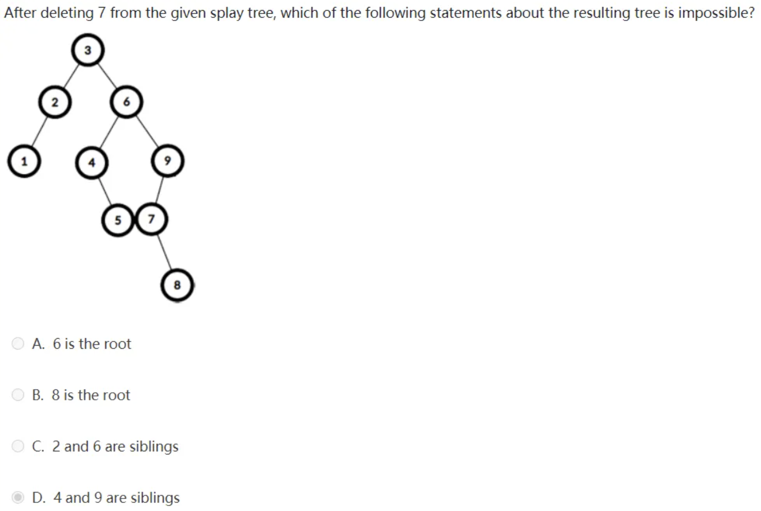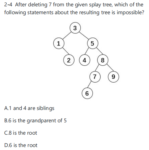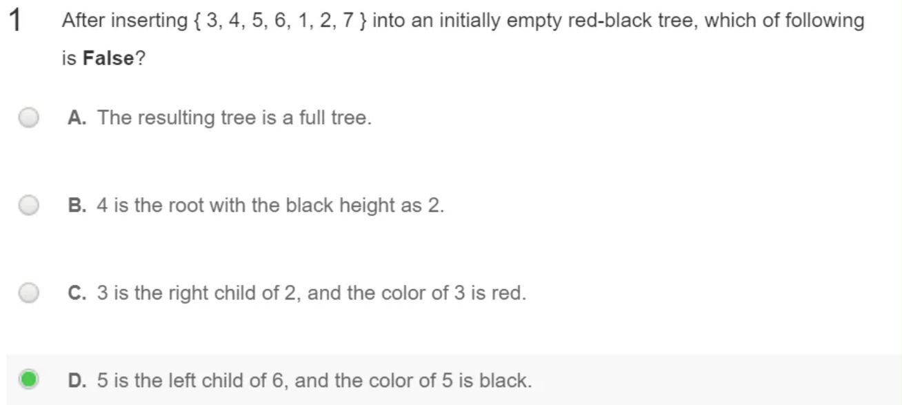 D.The resulting tree is the same as that generated by inserting 1,2,3,5,6,7 one by one into an initially empty 2-3 tree.