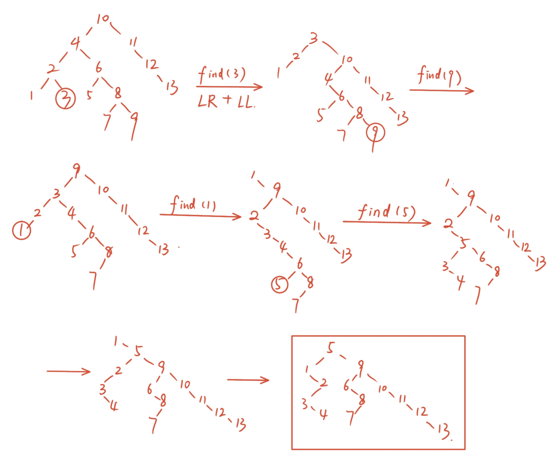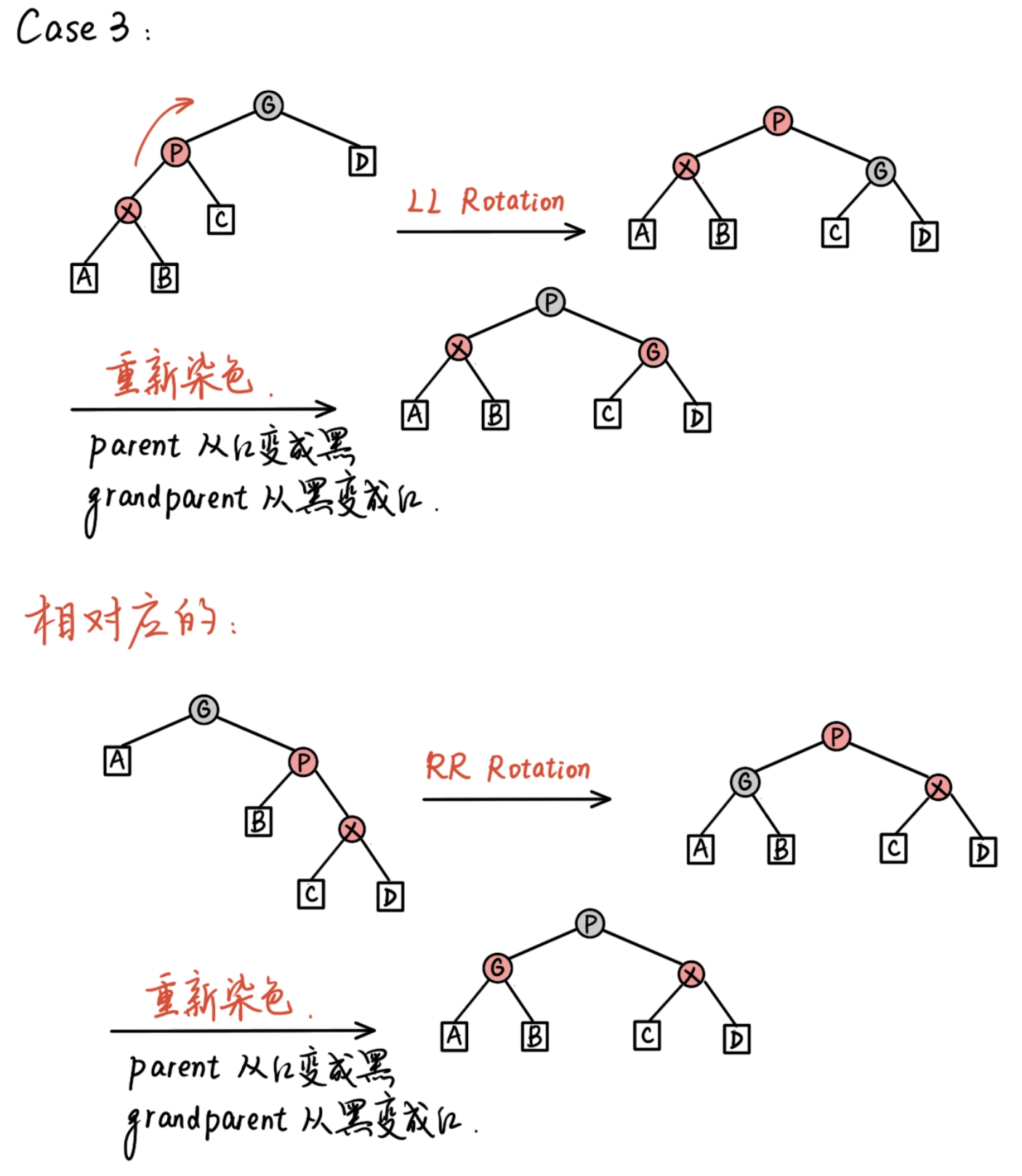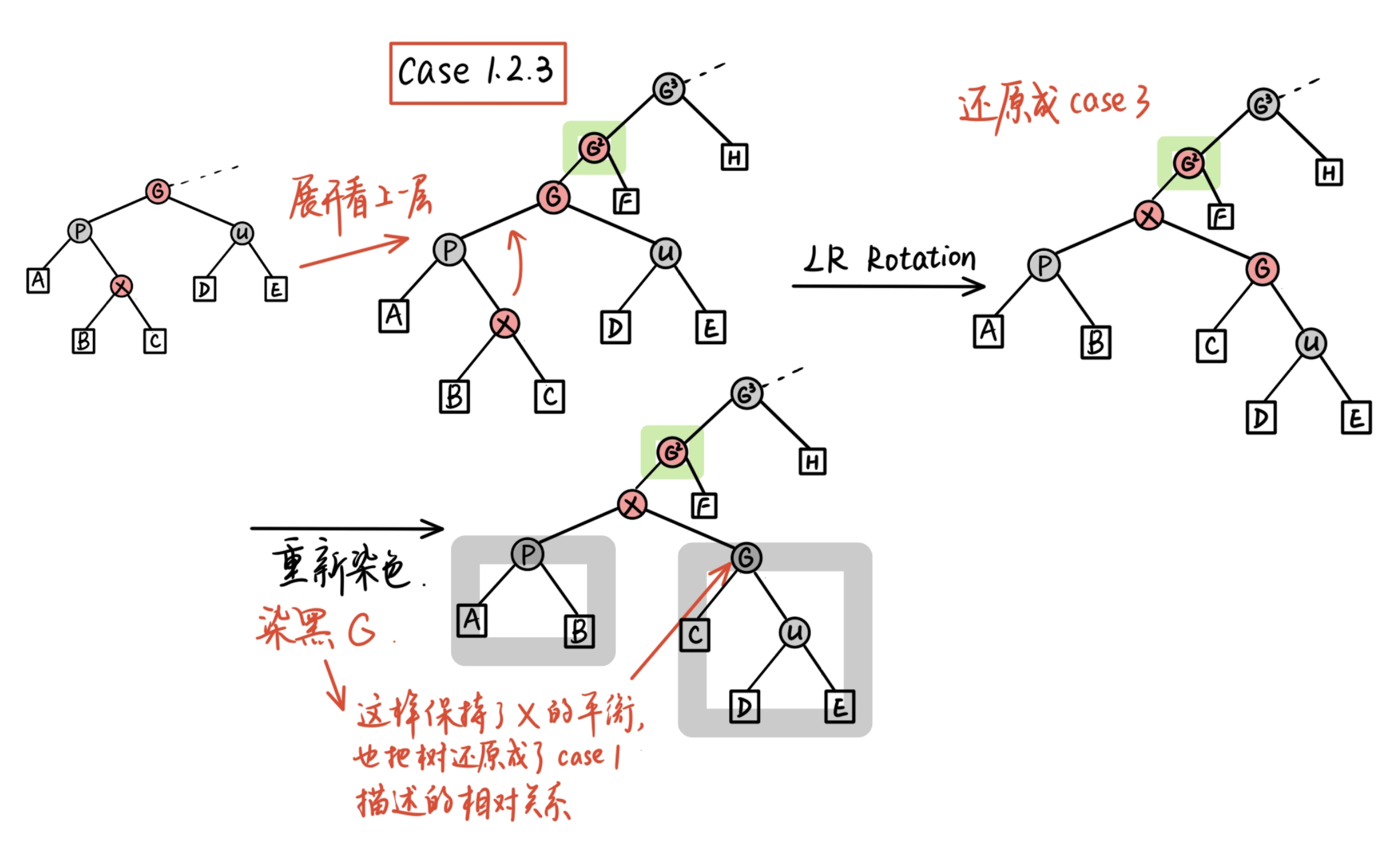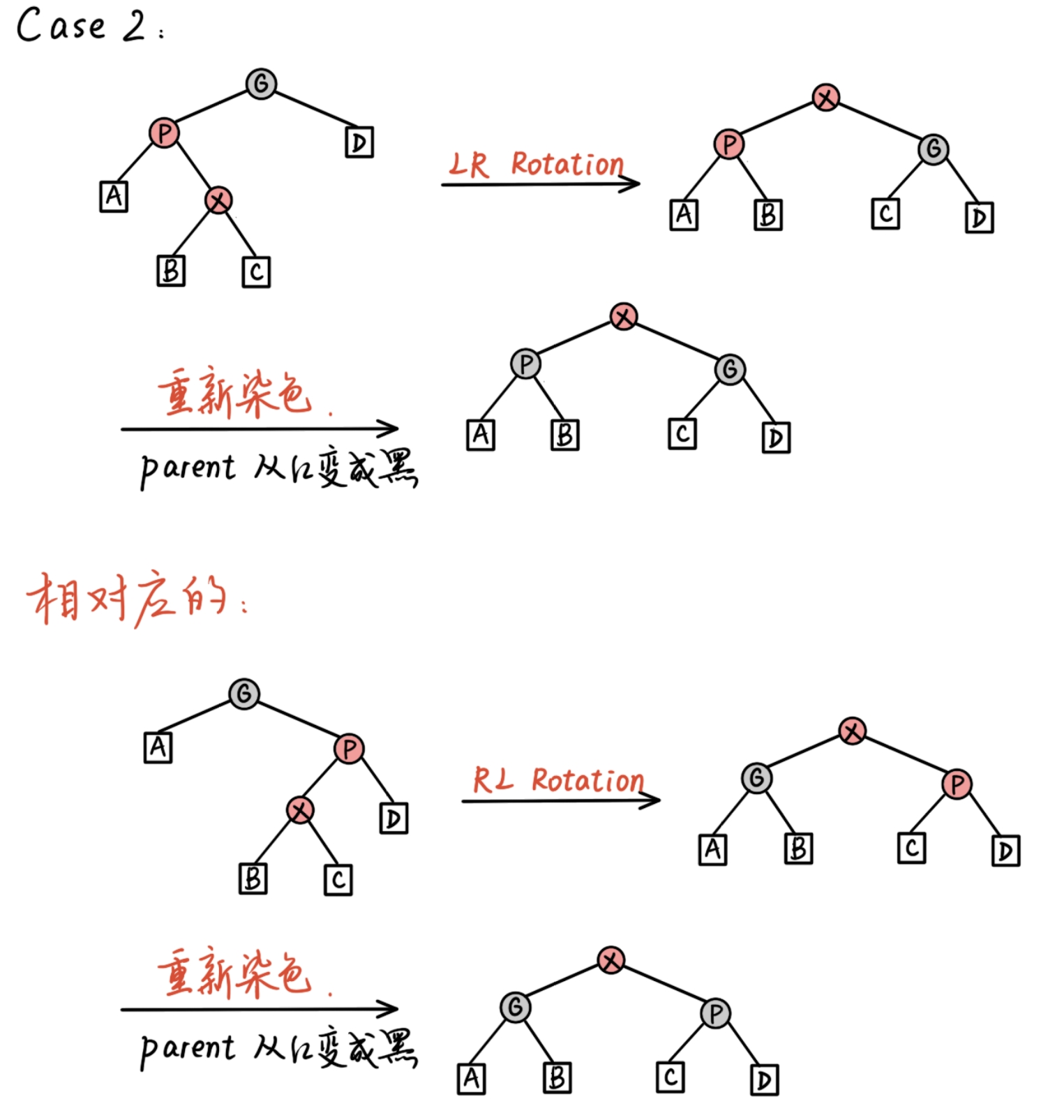 LR rotation过程可以看作是一次RR Rotation和一次LL Rotation的叠加,拆解如下: