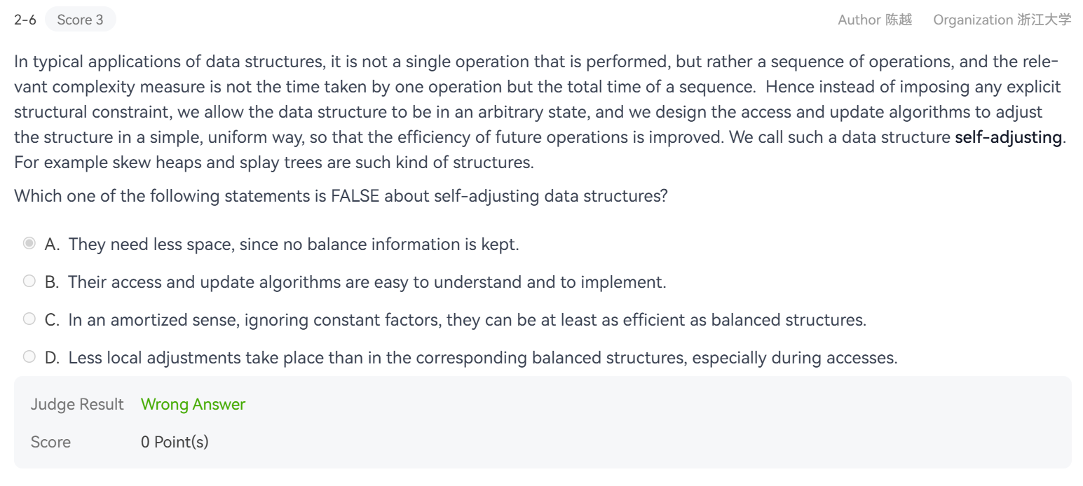 | AVL Tree | Splay Tree | RB Tree | B+ Tree(\(M-\text{order}\)) | |