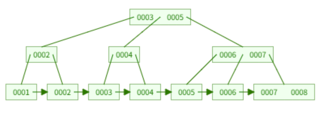 其中所有数据存储在叶子节点中,拼接起来就是一个严格单调递增/减的数列;