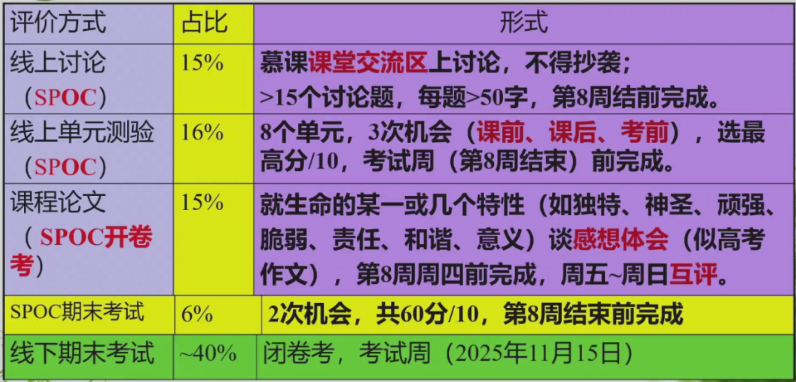 比较适合高中选了生物的文科生,内容不算难但是非常广。这门课真要搞明白还是需要一些生物基础和背诵能力的。一开始听着觉得很有意思,后面我就开始水课了。期末复习主要是面向书本(我是考前前一周每天晚上看一看,其实还是量比较大的)和历年卷(98特有的通识课传承)复习,据说有给分随机或者偏低的情况但我觉得还好。总之复习了拿一个比较高的绩点和获得8个还算愉快的周四晚我觉得比较值得。