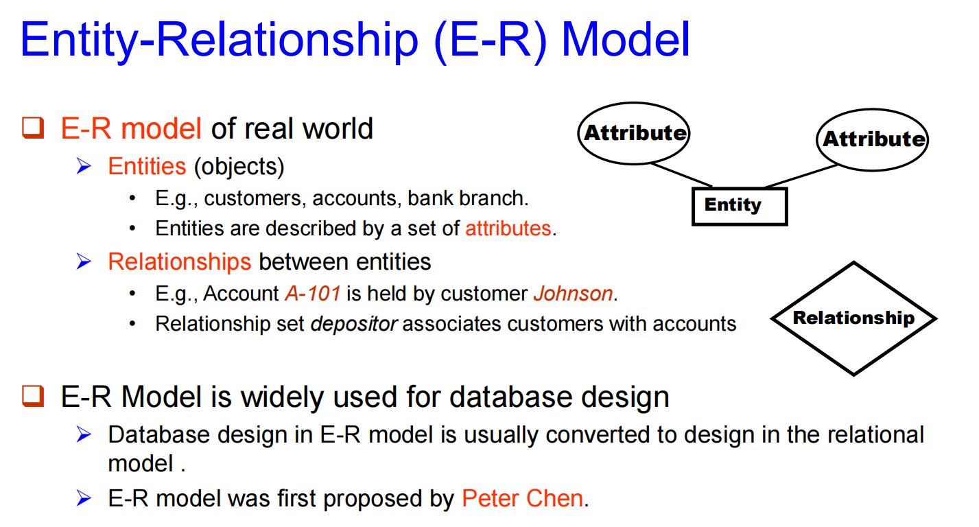 e.g. Entity-Relationship model, Relational model, Object-oriented model, Semi-structured data model, etc.