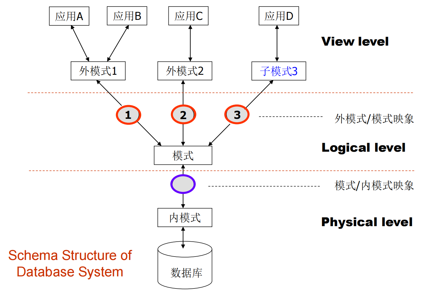 - Data Manipulation Language (DML): Language for accessing and manipulating the data organized by appropriate data model. 分为两类:Procedural (eg. C, Java, Pascal)和 Non-procedure (eg. SQL)